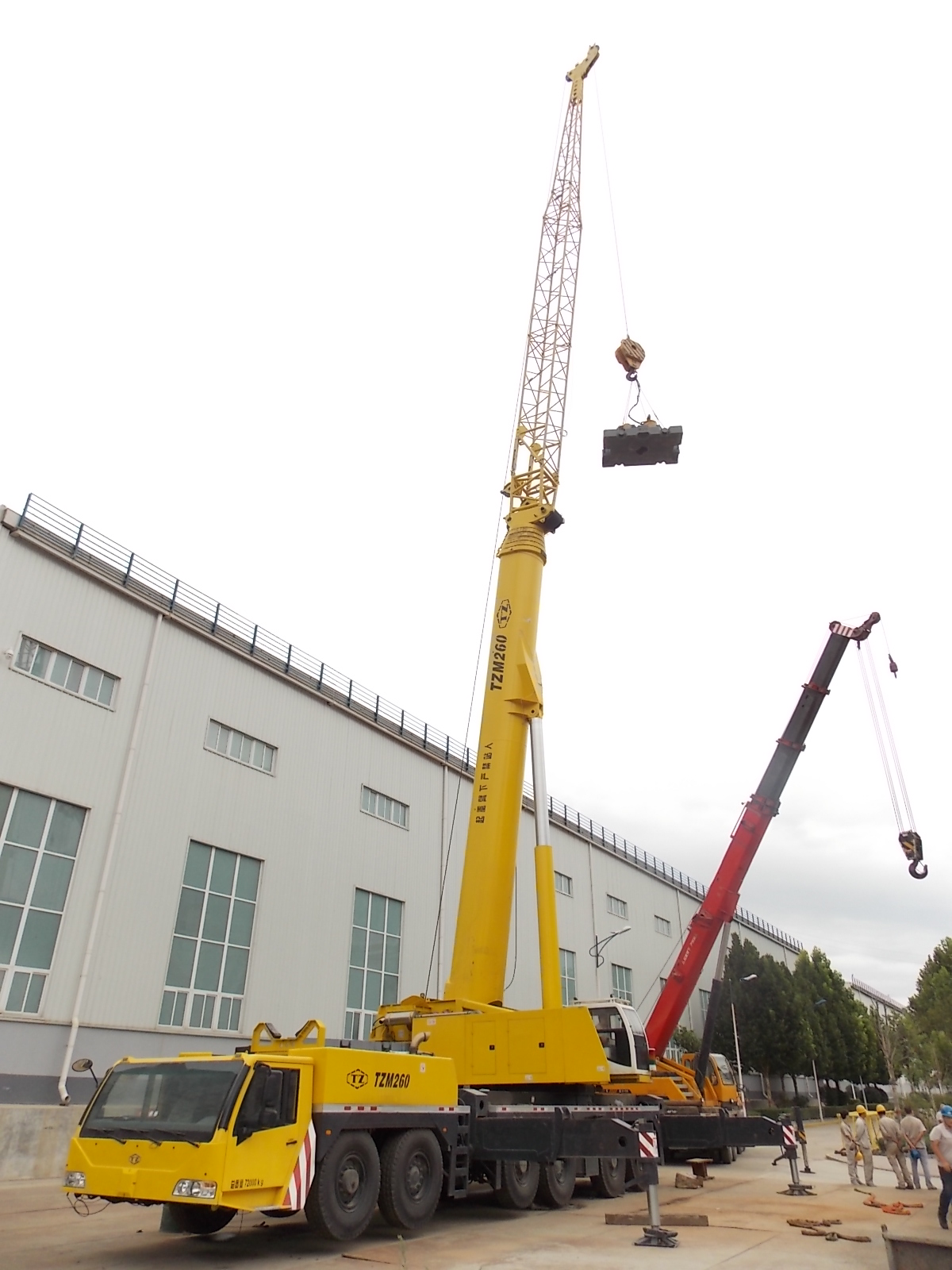 自主研發(fā)制造的全地面伸縮臂起重機(jī),全系列產(chǎn)品規(guī)格為260t~1600t,主打產(chǎn)品為TZM260、TZM500、TZM1200等機(jī)型。已銷往天津、內(nèi)蒙、甘肅、北京、河北、山西等地,受到了客戶廣泛好評。