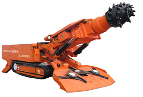 該機組適用于截割硬度≤70MPa煤巷或半煤巖巷道掘進,液壓系統(tǒng)為變量系統(tǒng),邊雙鏈刮板式運輸機構,截割臂伸縮,具有內(nèi)外噴霧系統(tǒng),行走減速器與馬達集成安裝,電源電壓為660/1140V,根據(jù)用戶需要可配裝超前臨時支護,方便煤巷支護作業(yè)。