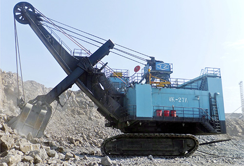 WK-27A礦用挖掘機(jī)與154-292t礦用汽車配套使用,可適用于千萬噸級大型露天煤礦、鐵礦及有色金屬礦山的剝離和采裝作業(yè)