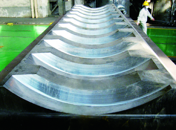 多年來,先后制造了近百件船用類鑄件,主要用戶有大連船廠、廣船國(guó)際有限公司、江蘇新時(shí)代船廠、揚(yáng)子江船業(yè)集團(tuán)等著名企業(yè),同時(shí)該類鑄件出口到韓國(guó)、德國(guó)、日本等國(guó)家。為中冶京城生產(chǎn)的32萬噸原油船掛舵臂,尺寸為10500mmX6700mmX2400mm,毛重達(dá)187噸;艉球輪廓尺寸為8472mm×2810mm×4640mm,毛重達(dá)107噸。