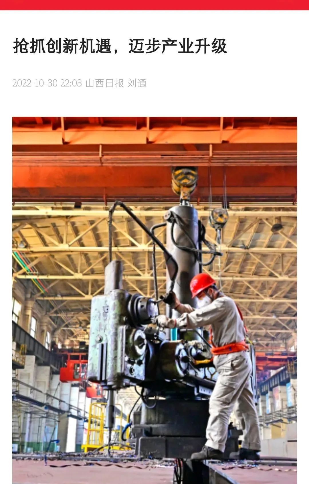10月30日,山西日?qǐng)?bào)以《搶抓創(chuàng)新機(jī)遇,邁步產(chǎn)業(yè)升級(jí)》為題,對(duì)太重集團(tuán)加大工藝技術(shù)創(chuàng)新取得的新突破進(jìn)行報(bào)道。全面深化改革以來(lái),太重集團(tuán)堅(jiān)持改革創(chuàng)新,聚焦智能設(shè)計(jì)、智能制造、智能產(chǎn)品、智能服務(wù),全力推動(dòng)“制造”向“智造”轉(zhuǎn)型升級(jí),持續(xù)提升制造業(yè)的技術(shù)含量,賦能公司高質(zhì)量高速度發(fā)展。