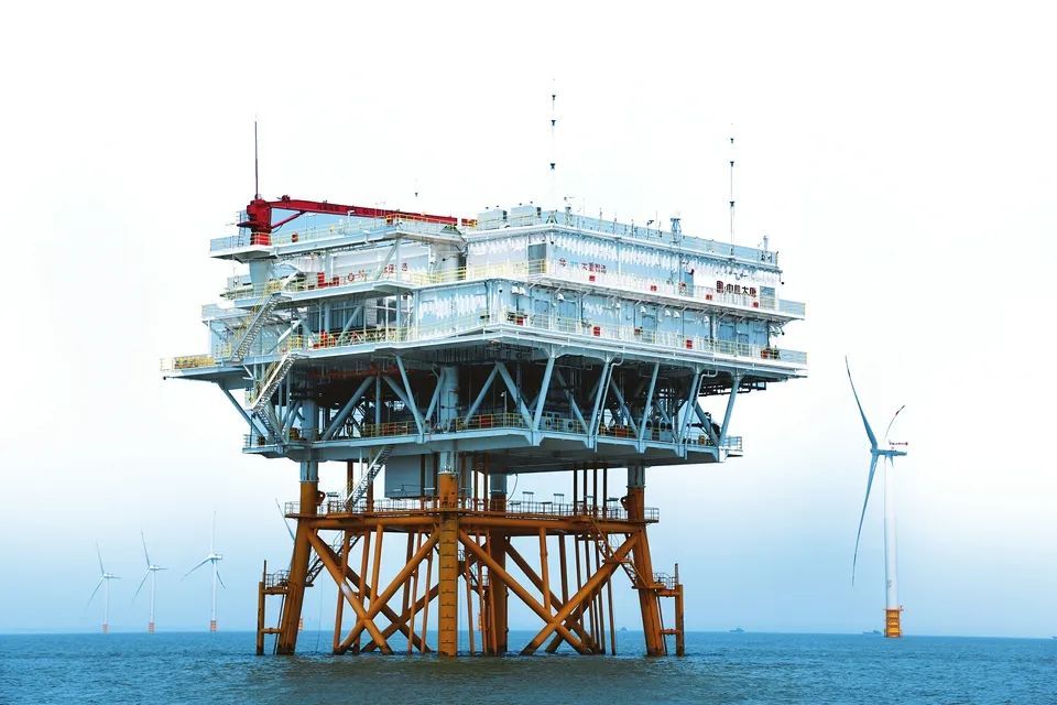 由太重制造的全國(guó)首個(gè)海上220kV全預(yù)制艙組塊海上風(fēng)電升壓站