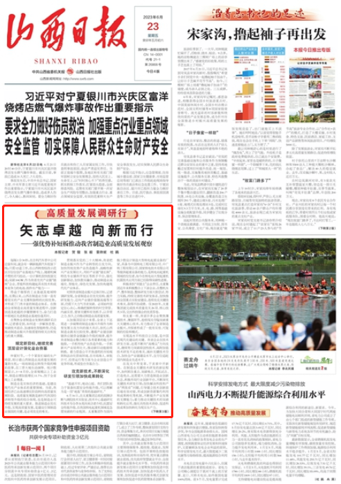 近日,山西日?qǐng)?bào)在頭版刊發(fā)《志卓越 向新而行——強(qiáng)優(yōu)勢(shì)補(bǔ)短板推動(dòng)我省制造業(yè)高質(zhì)量發(fā)展觀察》專欄文章,聚焦太重關(guān)鍵核心技術(shù)攻關(guān)進(jìn)行深入報(bào)道。實(shí)現(xiàn)高水平科自立自強(qiáng),是中國(guó)式現(xiàn)代化建設(shè)的關(guān)鍵。太重作為我省唯一的“雙鏈主”企業(yè),持續(xù)完善技術(shù)研發(fā)體系,加快推動(dòng)全國(guó)重點(diǎn)實(shí)驗(yàn)室建設(shè),多次闖關(guān)奪隘突破重大關(guān)鍵核心技術(shù),有力推動(dòng)了全省制造業(yè)振興,為助力我省產(chǎn)業(yè)轉(zhuǎn)型高質(zhì)量發(fā)展貢獻(xiàn)“太重”力量。