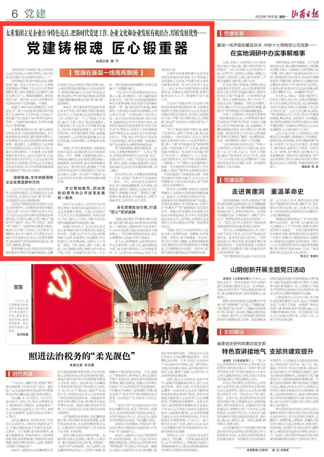 山西日?qǐng)?bào) | 黨建鑄根魂 匠心鍛重器