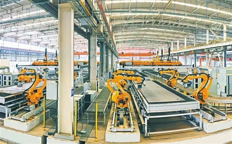 距離老廠區(qū)50公里外,山西轉(zhuǎn)型綜改示范區(qū)瀟河產(chǎn)業(yè)園區(qū)內(nèi),太重智能高端裝備產(chǎn)業(yè)園已拔地而起。在這里,太重所有裝備制造都能實現(xiàn)以工序為單位的連續(xù)生產(chǎn)。各種機器人設備夜以繼日“上班”,智能導引搬運車來回穿梭、自動取送貨,一張鋼板經(jīng)過全流程生產(chǎn)線后,即可最大程度地切割出各類高質(zhì)量零部件,智能產(chǎn)線上“只見物,不見人”。
